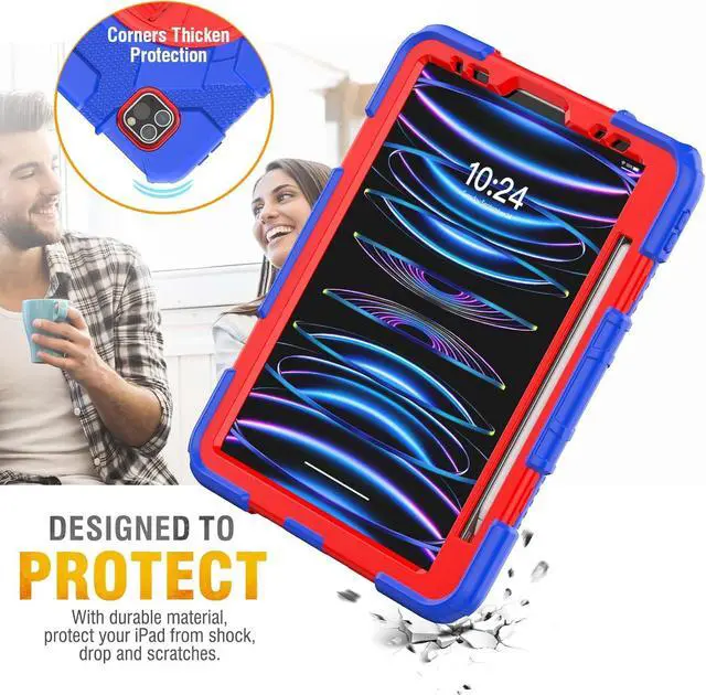 Drop Proof Design & Protector \u2014 This Pro 11inch Case is Designed to Protect ! With sturdy anti shock material, soft silicone, hard plastic frame and built-in screen protector (package contains 2 front covers, one with screen protector and one without). Full body sturdy Pro 11 inch case can keep your Pad safe from shock, drop, scratch or accidental damages in daily use.