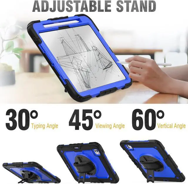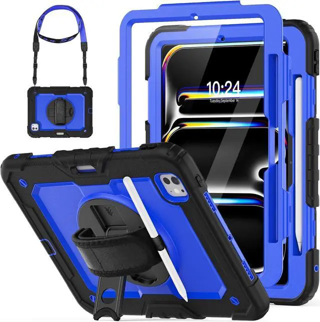 Case for iPad Pro 11 inch 2024 (M4), Shockproof Design with Pencil Holder/Screen Protector/Rotating Hand Strap Stand, Protective Cover for iPad Pro11 5th Gen (A2836, A2837, A3006) - Blue