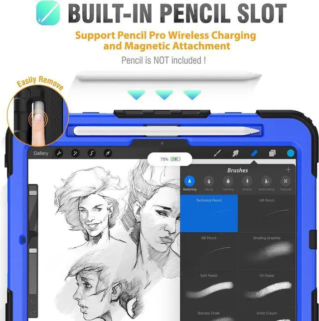 Shockproof+Screen Protector \u2014 This case for iPad Pro11 m4 is designed with durable anti shock material, soft silicone, hard plastic shell and built-in screen protector. This sturdy pro case can keep your device safe from shock, drop, scratch or accidental damages in daily use.