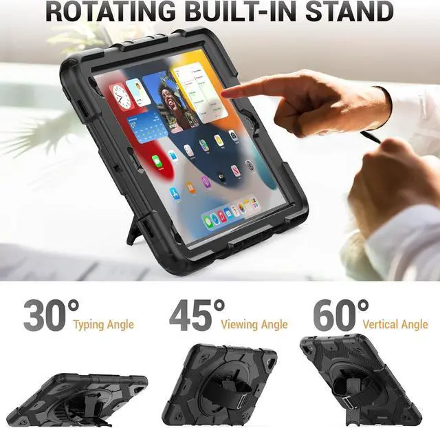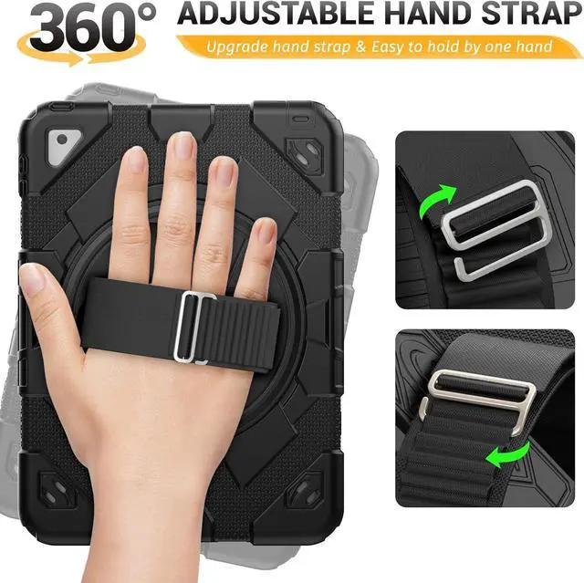 Case for iPad Air 3rd Generation/Pro 10.5 inch / 10.2 inch with Pencil Holder & Adjustable Hand Strap & Screen Protector, Full Body Protective Case for iPad 9th 8th 7th Gen & Air 3 - Black