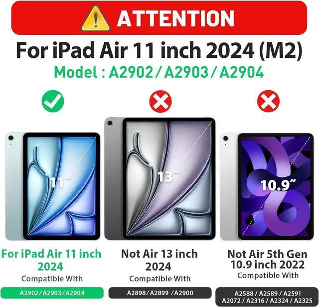 Case for iPad Air 11 2024NOLY for iPad Air 11 inch Case 2024 / iPad Air 6th Gen Case. Model Number (A2902, A2903, A2904). NOT for other old version, the Pencil is NOT included!
