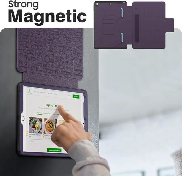 Strong Magnetic & Pencil Holder \u2014 With strong magnetic on the back cover, you can attach your pad on refrigerator or other surface of iron material, free you hands when you need. Also with the pencil holder on the cover, it can keep your pen secure in place and free to take anywhere.