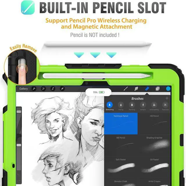 Pencil Holder & Precise Cut-outsAllow easy access to all ports and buttons, the Pencil Slot Holder supports pencil 2nd wireless charge and magnetic attachment, always keep your pencil secure in place, free take the Air 11 / Air 6th Gen case around or put it in to a bag.