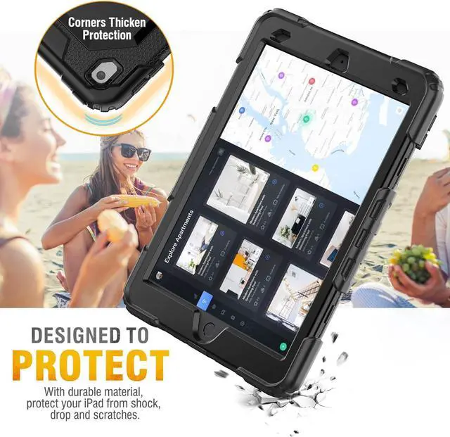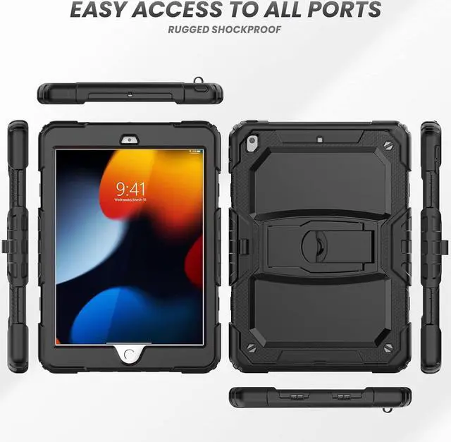 Shockproof Design This silicone case for iPad 9 / 8 / 7 case provides full body protection, with durable anti shock material, soft silicone, hard plastic freem and built-in stand. This sturdy case can keep your devide safe from shock, drop, scratch or accidental damages in daily use, also ideal for kids.