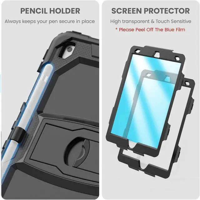 Built-in Screen Protector This 10.2inch ase has built-in screen protector, it maintains the original viewing experience and protects your screen from daily scratches and dust (Peel the blue flim off before use).