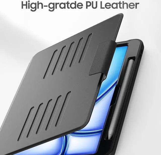 Strong Magnetic & Pencil HolderWith strong magnetic on the back cover, you can attach your iPad on refrigerator or other surface of iron material, free you hands when you need. Also with the pencil holder on the cover, it can keep your pen secure in place and free to take anywhere.