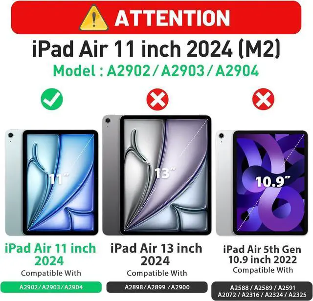 Fits iPad Air 11 inch Case 2024NOLY for iPad Air 11 inch Case 2024 / iPad Air 6th Gen Case. Model Number (A2902, A2903, A2904). NOT for other old version, the Pencil is NOT included!