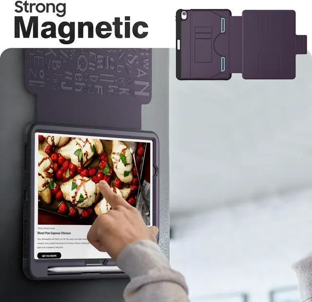 Strong Magnetic & Pencil HolderWith strong magnetic on the back cover, you can attach your iPad on refrigerator or other surface of iron material, free you hands when you need. Also with the pencil holder on the cover, it can keep your pen secure in place and free to take anywhere.