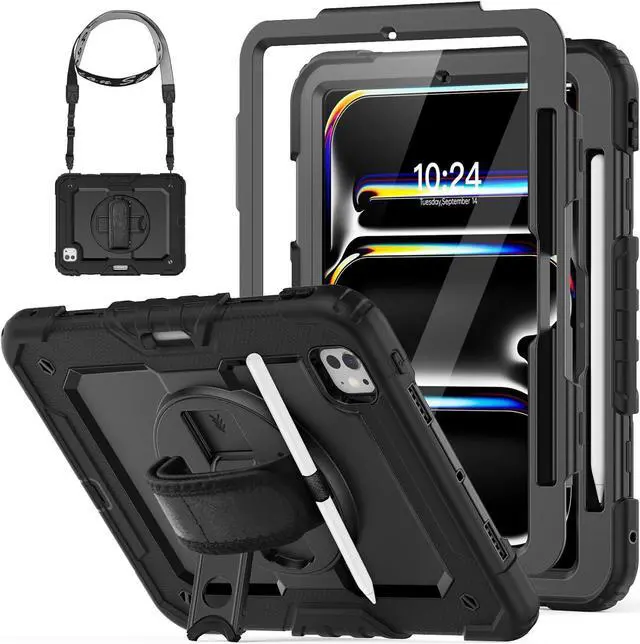 Rotating Hand Strap & Stand This pro 11 2024 case provides a stable supports, with viewing/drawing/typing angles. You can hold the pad safely by one hand and find the most comfortable viewing angle you need. also, the stand can be folded up when not in use.