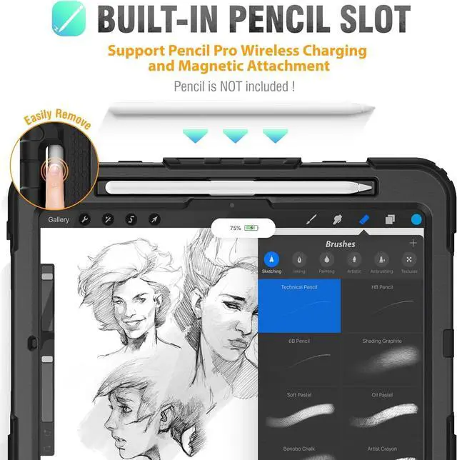 Pencil Holder & Precise Cut-outs Allow easy access to all ports and buttons, the Pencil Slot Holder supports pencil pro wireless charge and magnetic attachment, always keep your pencil secure in place, free take the Pro11 (5th) case around or put it in to a bag.