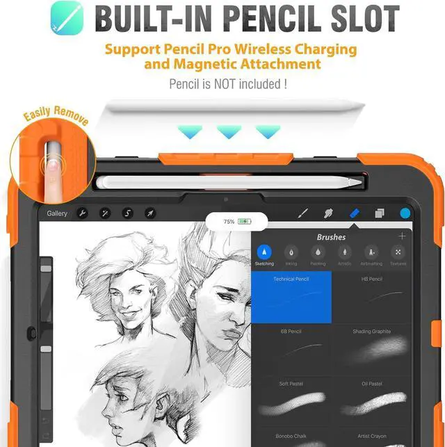 Pencil Holder & Precise Cut-outs \u2014 Allow easy access to all ports and buttons, the Pencil Slot Holder supports pencil pro wireless charge and magnetic attachment, always keep your pencil secure in place, free take the Pro11 (5th) case around or put it in to a bag.