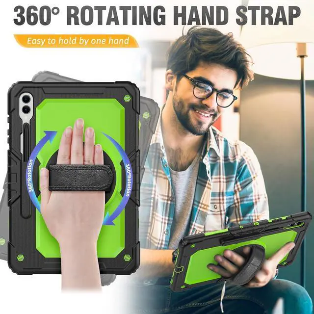 360 Rotating Hand Strap & StandWith adjustable swivel hand strap and stand, you can hold the tab S9+ 12.4 inch safely by one hand and find the most comfortable viewing angle you need. The built-in stand provides a stable supports, with viewing/drawing/typing angles you need, and it can be folded up when not in use.