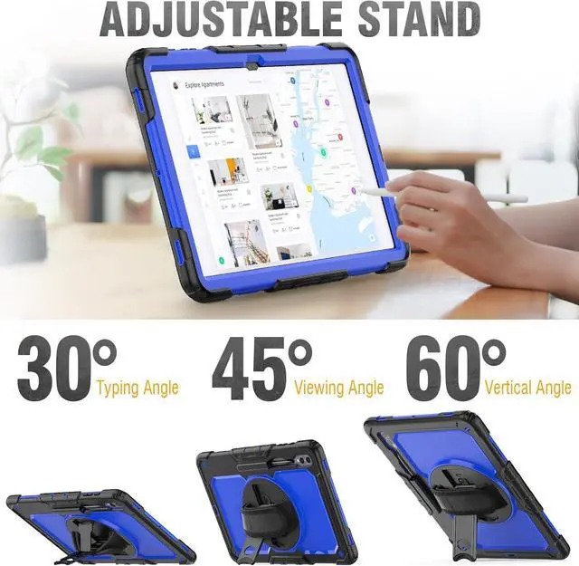 360 Rotating Hand Strap & StandWith adjustable swivel hand strap and stand, you can hold the tab S9/S8 Ultra 14.6 inch safely by one hand and find the most comfortable viewing angle you need. The built-in stand provides a stable supports, with viewing/drawing/typing angles you need, and it can be folded up when not in use.