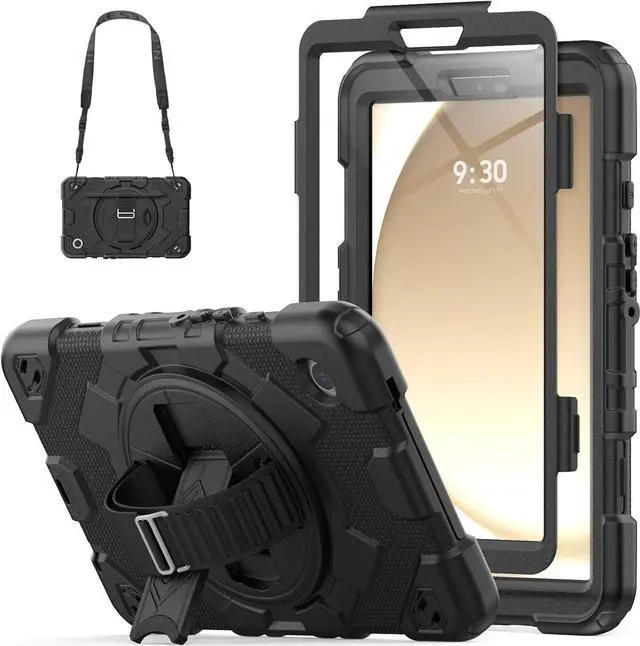 Drop Proof & ProtectorThis Galaxy Tab A9 case is Designed to Protect ! With durable anti shock material, soft silicone, hard shell cover and built-in screen protector (package contains 2 front covers, one with screen protector and one without). Full body sturdy Tab A9 case can keep your Tablet safe from shock, drop, scratch or accidental damages in daily use.