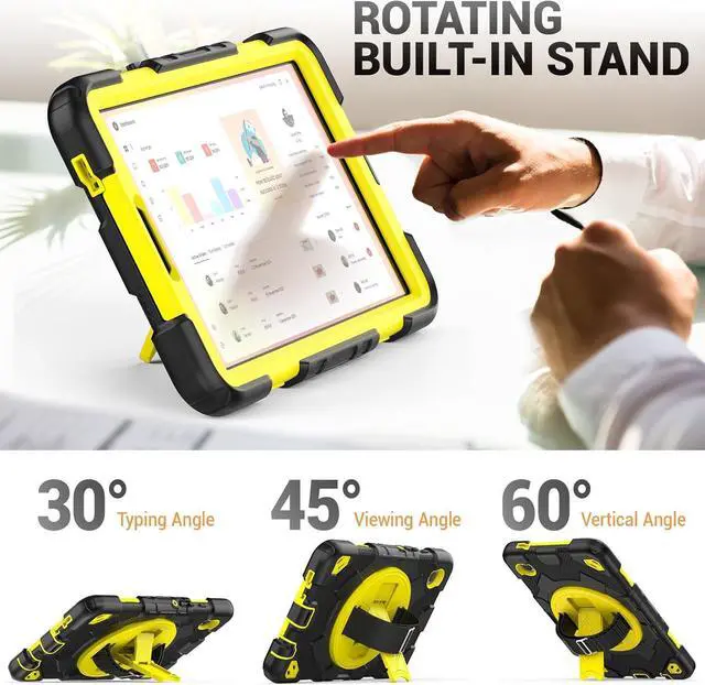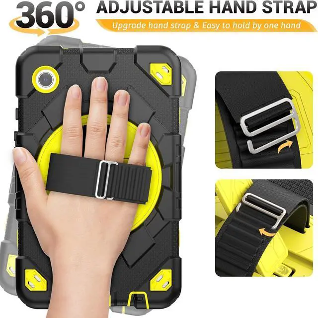 Upgraded Hand Strap & StandThe upgraded strap has more adjustable positions, both kids and adults can use it, also easy to hold the Tablet by one hand and find the most comfortable viewing angle you need. The rotating stand provides a stable support, you can change it to viewing/drawing/typing angles you need, and it can be folded up when not in use.