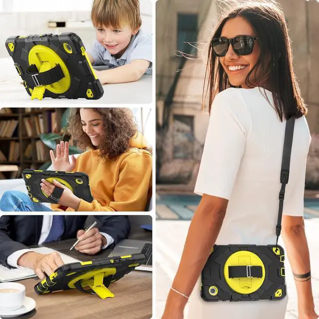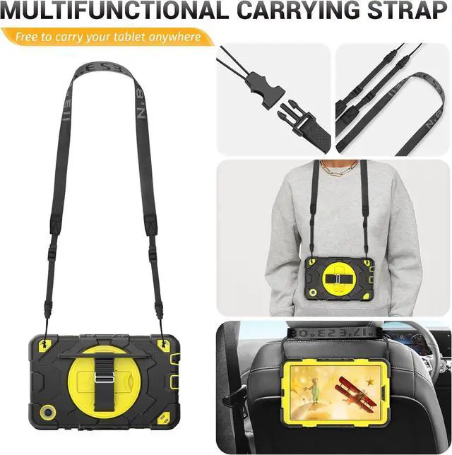 Multifunctional Carrying StrapDifferent color of this case has its own theme of shoulder strap, it\u2019s detachable and adjustable, you can carry the Tablet around or use the strap when you go out, and you can also hang it on the back of seat for fun when traveling in cars.