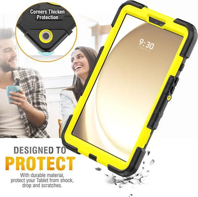 Drop Proof & ProtectorThis Galaxy Tab A9 case is Designed to Protect ! With durable anti shock material, soft silicone, hard shell cover and built-in screen protector (package contains 2 front covers, one with screen protector and one without). Full body sturdy Tab A9 case can keep your Tablet safe from shock, drop, scratch or accidental damages in daily use.