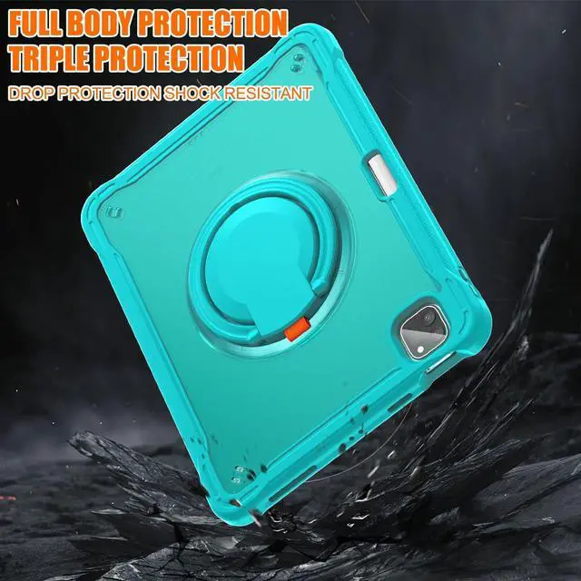 iPad Pro 11 inch Case 2024 M4 Chip Lightweight Dual-Layer Protective Tablet Cover, Durable Shock-Absorbing Corners with 360° Rotating Retractable Kickstand Ring Built-in Pen Slot, Blue