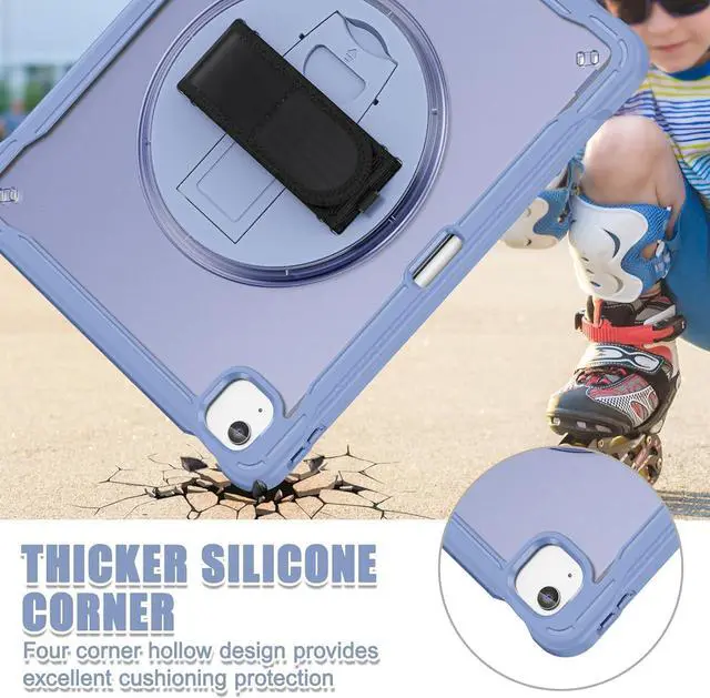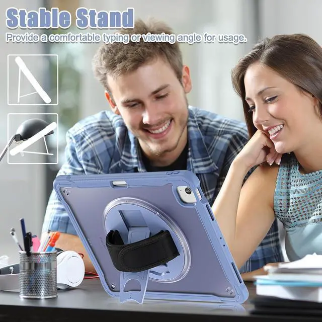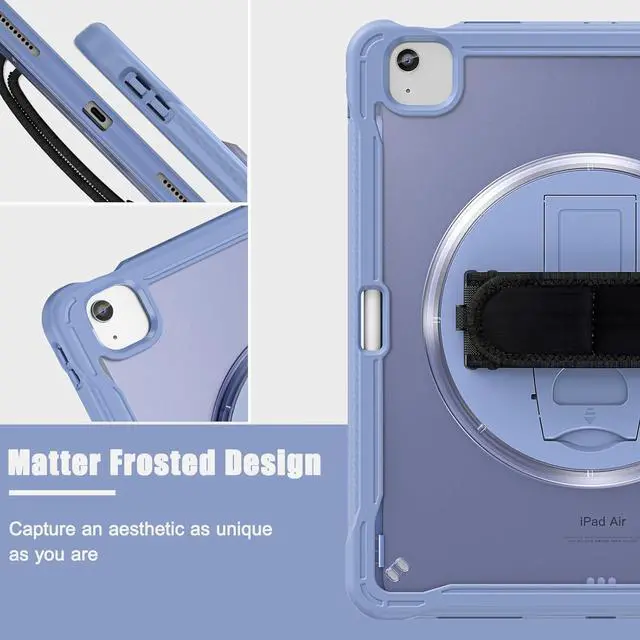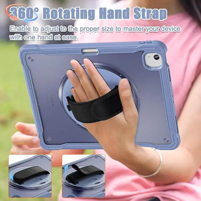360° Rotating Hand Strap Design: With a 360° rotating hand strap design, this case offers versatile handling options, allowing you to comfortably carry your iPad Air in any orientation, making it ideal for on-the-go use.
