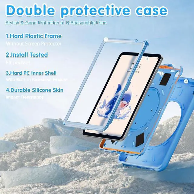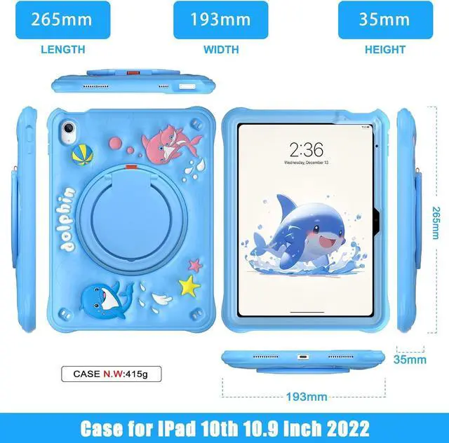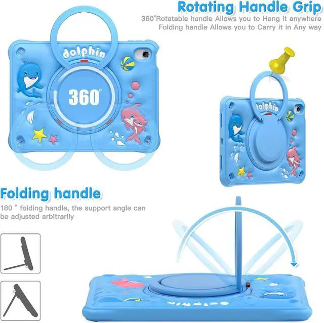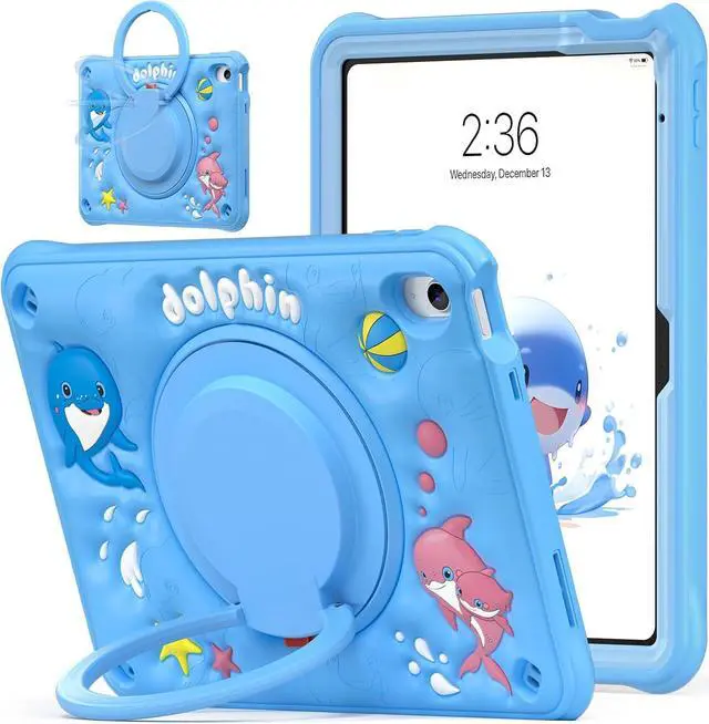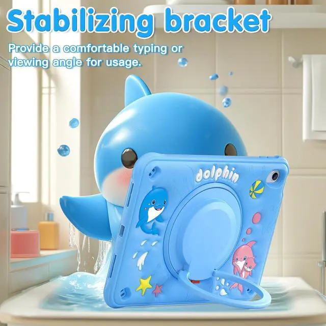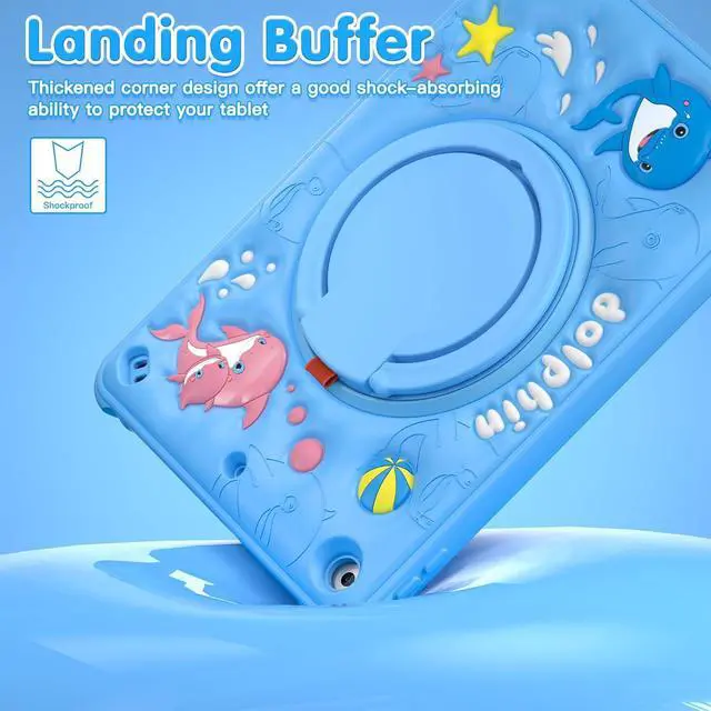 Kid-Friendly Cute Design with Multi-Layer Protection: The iPad case is perfect for children, featuring an adorable blue 3D dolphin silicone outer shell combined with a durable inner plastic frame for reliable protection