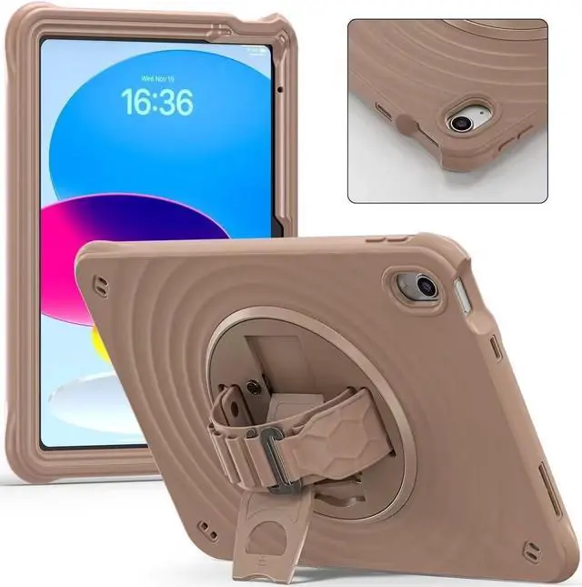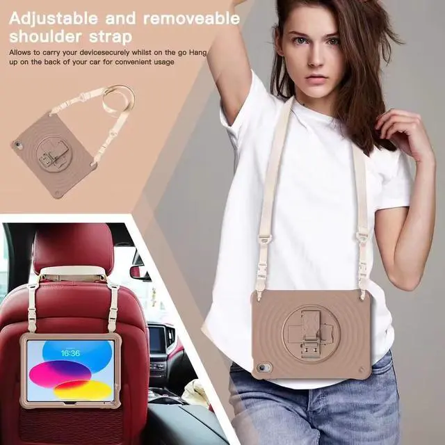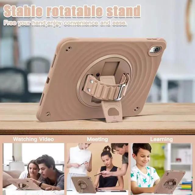 Stand + Shoulder Strap The gorgeous 10.9 -inch Retina display is an amazing way to watch movies or draw your next masterpiece. However, it also needs a free display angle. This case provides a bracket that can rotate 360 stand and adjustable length shoulder strap. The stand can provide multi -angle support. The shoulder strap can hang your iPad somewhere.
