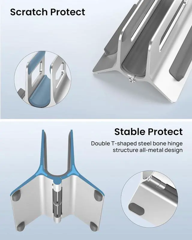 Durable & StableMade of premium aluminum, the vertical laptop stand holder is durable and stable. Featuring high-quality silicone pads that keep your laptop secure, preventing from scratches and sliding.