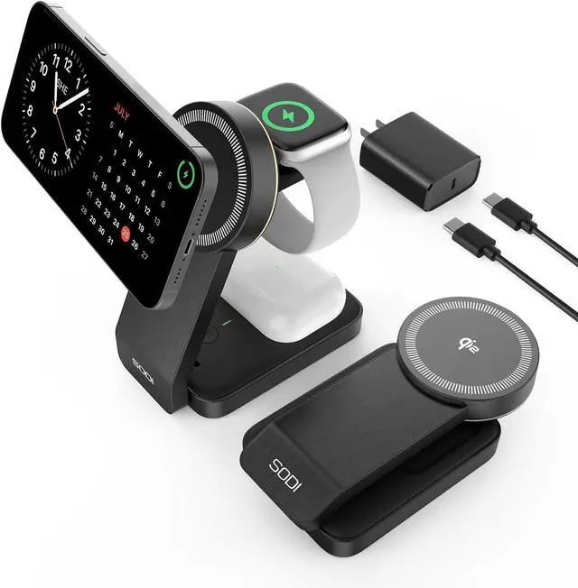 [Phone Case Charging and Smart Advisory] 3 in 1 Foldable nightstand charging station supports charging through most magnetic cases.We recommend removing your phone case to achieve maximum wireless charging power.