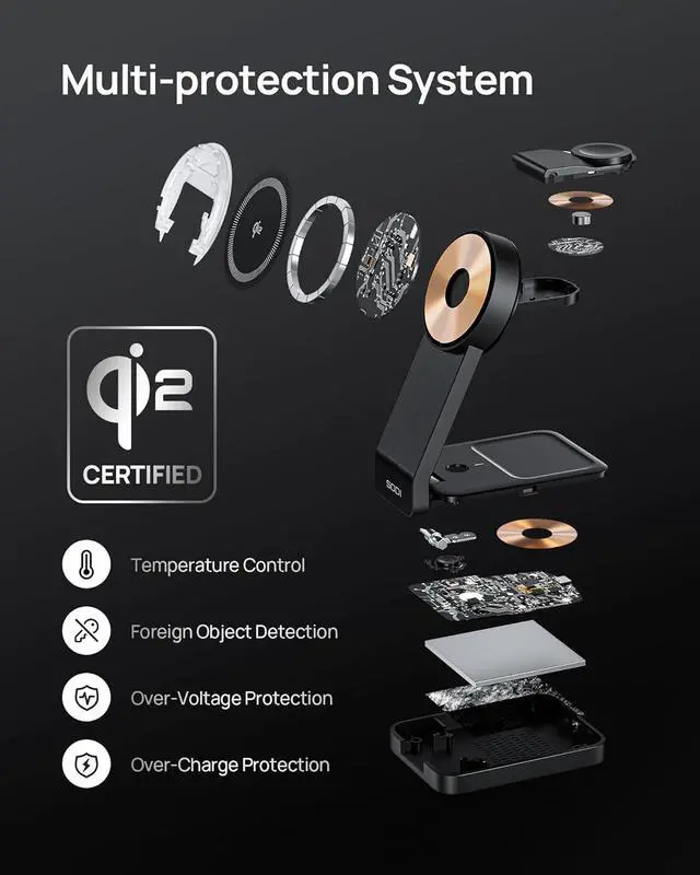 [Engineered for Travel-Ready Portability] At 225g (lighter than two iPhones) with foldable arms perfect for travel , this Wireless Charger Station for Multiple Devices slips into laptop bag is perfect for charging three devices simultaneously anytime, anywhere. The scratch-resistant base grips hotel desks securely - tested through 500+ fold cycles without loosening.