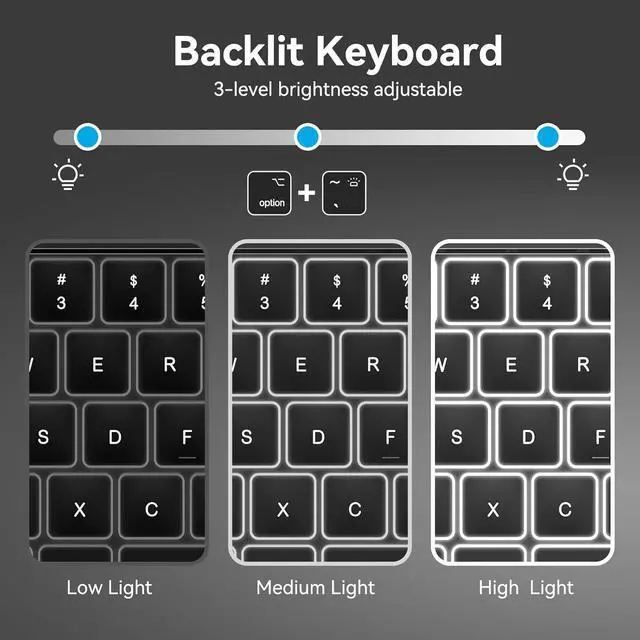 Type Day and Night: The keyboard case for iPad Pro 12.9" comes with backlight. The 3 brightness levels let you work comfortably at any time of day. The 500mAh battery makes the wireless keyboard standby for up to 100 days after 1-2 hours of full charge.
