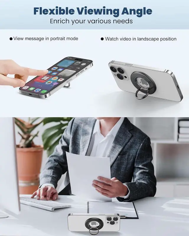 Wide CompatibilityOur phone holder stand can snap directly to iPhone 16 Pro Max Plus; iPhone 15 Pro Max Plus; iPhone 14 Pro Max Plus; iPhone 13 Pro Max Plus Mini; iPhone 12 Pro Max Plus Mini or magnetic cases. Two extra metal rings are provided to enhance magnetism for non-magnetic cases or other phone models.