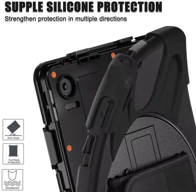 Stand + Shoulder Strap The gorgeous 10.1 -inch display is an amazing way to watch movies or draw your next masterpiece. However, it also needs a free display angle. This case provides a bracket that can rotate 360 stand and adjustable length shoulder strap. The stand can provide multi -angle support. The shoulder strap can hang your tablet somewhere.