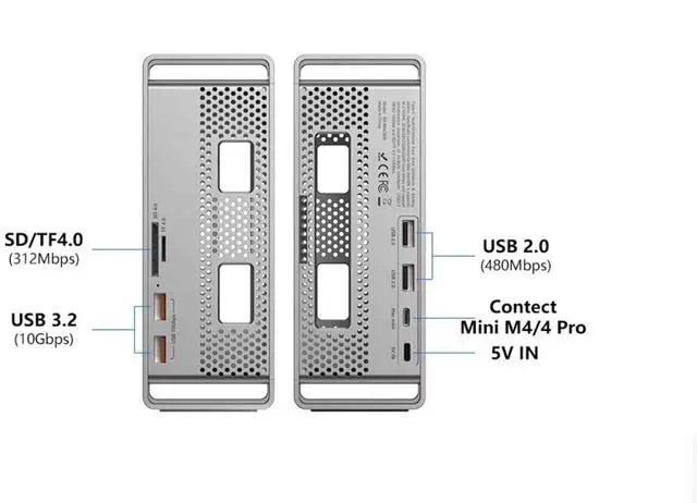 Excellent Heat Dissipation PerformanceFeaturing an optimized thermal design, the case elevates the air intake and exhaust vents of the Mac Mini M4 to the sides, increasing airflow contact area and accelerating circulation. The high thermal conductivity of its aluminum alloy further enhances heat dissipation efficiency.