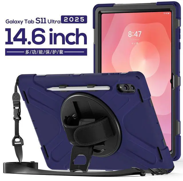 Shockproof Protective Case for Galaxy Tab S11 Ultra 14.6 inch with Pen Slot,Hand Strap & Kickstand | Shoulder Strap | Black Rugged Cover | Hard Shell Design | Model# S11 Ultra Navy blue
