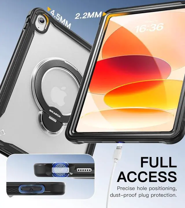 3-in-1 360° Spin Stand | Work, Play, Create:Our original O Stand Provides a wider and more flexible adjustment angle, reducing screen glare in landscape or setting it upright to act as a mini tripod with a unique 90° vertical position. Fit for iPad A16 11th/10th case with stand, the O-ring also functions as a secure grip, giving you steady hands to prevent drops. When closed, it lies flush for Bag-friendly carry.