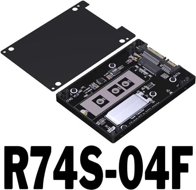 R74S-04F: M.2 (B+M-key) SATA to SATA (Serial ATA) hard drive enclosure, with soldered N 0.047F supercapacitor, Bandwidth SATA 3.0 6Gbp.