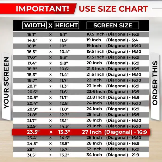 ![]() 27" 16:9 | ![]() 27" 16:9 [2-Pack] | ![]() 27" 16:10 | ![]() 26" 16:10 | ![]() 28" 16:10 | ![]() 28" 16:9 |