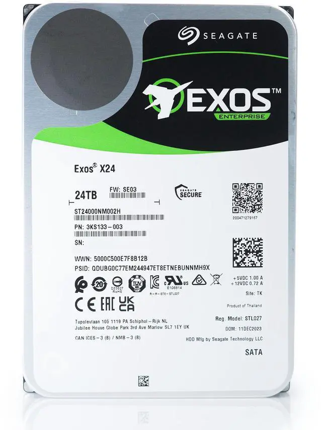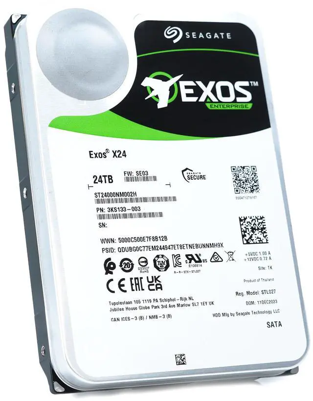 Seagate Exos X24 24TB SATA HDD ST24000NM002H 7.2K RPM 6Gb/s 512e 3.5in 512MB