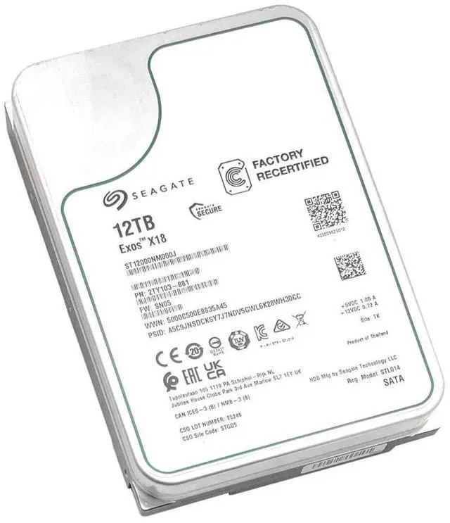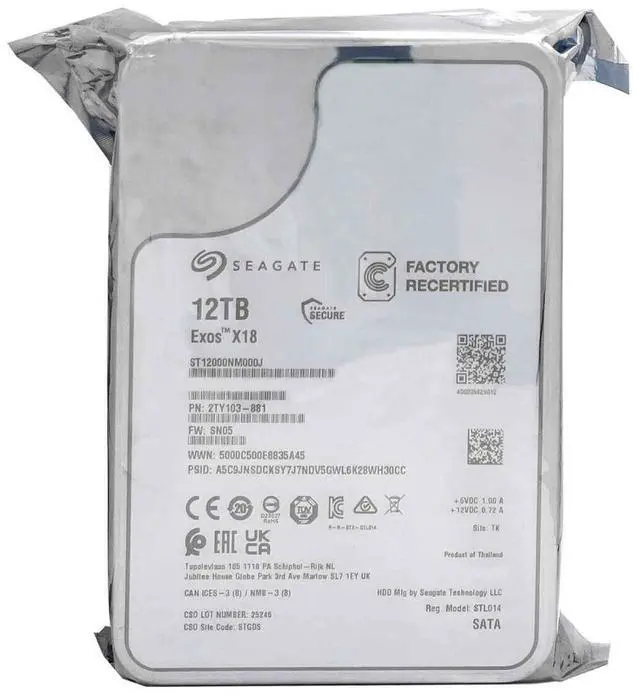 Seagate Exos X18 12TB 256MB 7200RPM 3.5in SATA6Gb/s Enterprise HDD ST12000NM000J