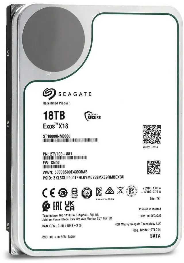 Seagate Exos X18 18TB ST18000NM000J 7.2K RPM SATA 6Gb/s 512e 256MB 3.5" HDD
