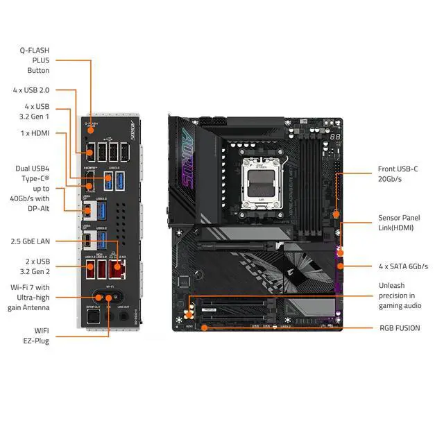 Aorus X870E AORUS ELITE WIFI7 DDR5 AM5 DDR5 ATX Gaming Desktop Motherboard