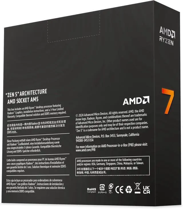 AMD Ryzen 7 9700X Processor (Zen 5) 8-Core 3.8GHz AM5 65W Desktop CPU