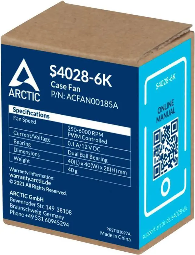 The S4028-6K has a particularly wide speed range that can be regulated via PWM and voltage. With its 6000 RPM max it offers a well-balanced ratio between cooling power and noise