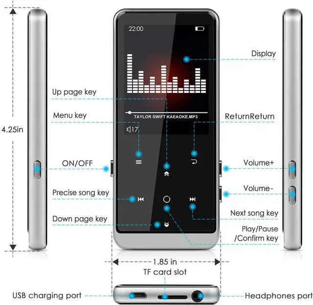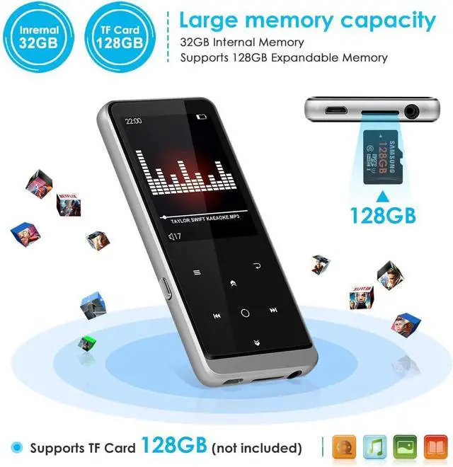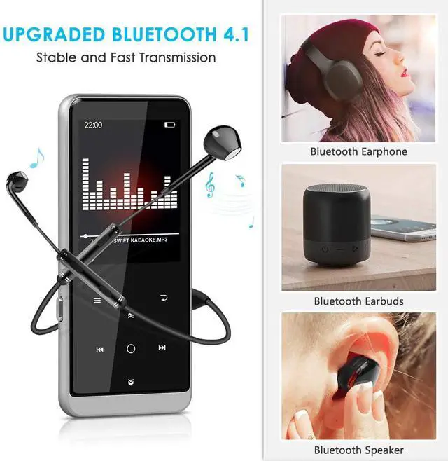 Full Touch HD Screen -- All-metal case and high-gloss spray paint, with 2.4 inch high definition screen that make the whole MP3 player crystal clear. High sensitive full touch screen, it can play music instantly with a light touch. ^^ 32GB Large Memory Capacity -- Leelbox music player comes with 32GB of storage, allowing you to store up to 8, 000 songs for listening on the go, supports 128GB Micro SD card to expand more storage to save more songs, E-books and pictures. ^^ Bluetooth 4.1 Music Player -- Supports Bluetooth 4.1 to connect more wireless devices like headset, speakers and earbuds.