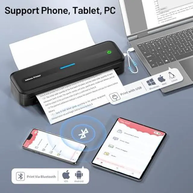 Itari Portable Printer Wireless for Travel with 2 Rolls of Thermal Printer Paper 8.5 x 11 US Letter for M08F M832 Portable Printer