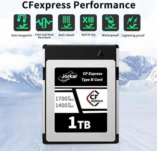 Jorkar 256GB CFexpress Type B Memory Card, High-Speed Up to 1700MB/s, RAW 8K 4K Photo & Video, for Cameras Camcorders Nikon Z6/Z7/Z8/D6, Canon EOS-1DXMark III/EOS-R5, Panasonic S1/S1R, DJI Ronin 4D