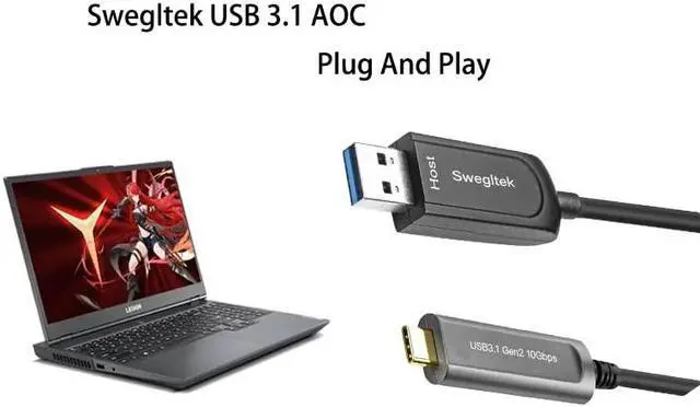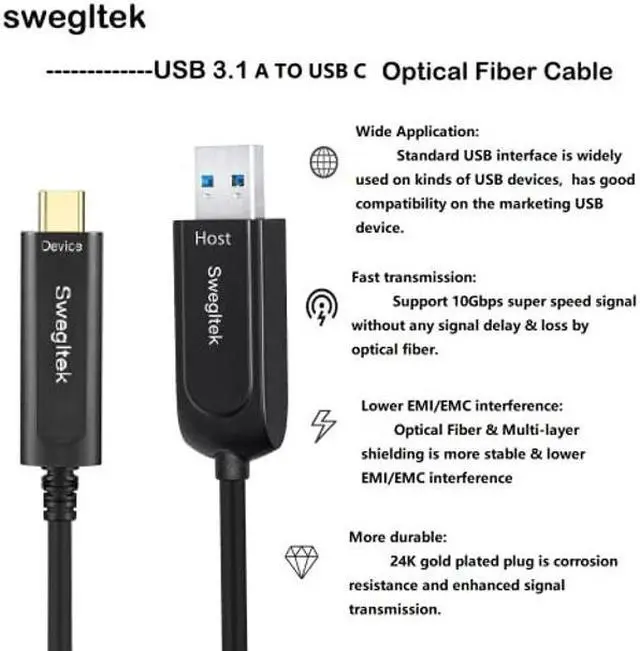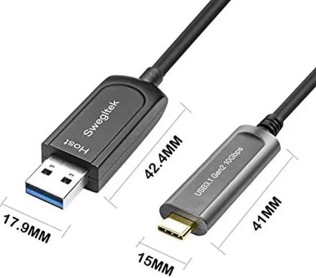 Swegltk USB A TO USB C Fiber Otpical Cable Support USB3.1 Gen 2, support 10Gbps, Support max 50m with zero data loss.