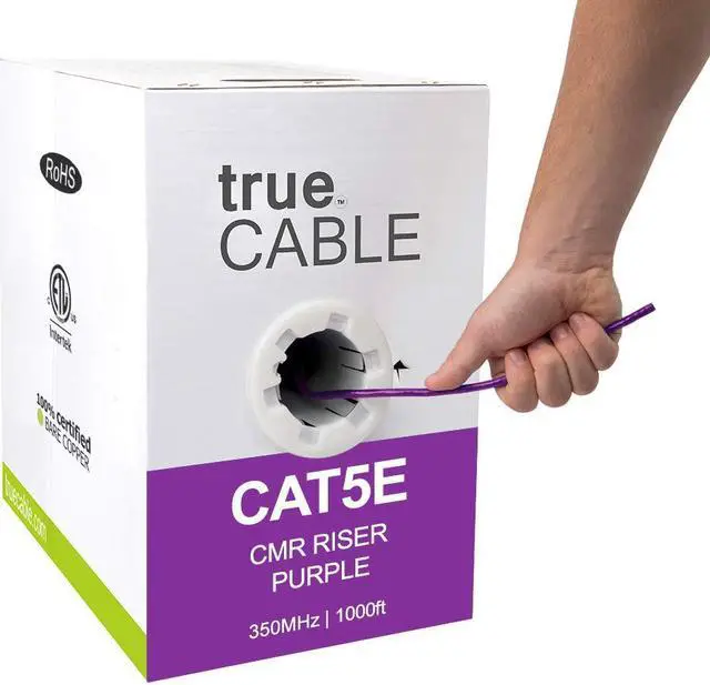 Cable Construction: Riser Rated PVC Jacket (CMR) - Polyethylene Insulation (PE) Our cables are manufactured with 100% bare copper wire, NOT copper clad aluminum (CCA) wire. Please reference our trueCABLE spec sheet image for complete product information. Supports all your devices TV Server Media Server Gaming Console Wi-Fi Router Printer Computer/Laptop Telephone Commonly referred to as: Cat5E Cable Cat5E Ethernet Cable Cat 5E Network Cable Phone Cable LAN Cable RJ45 Wire Category Cable