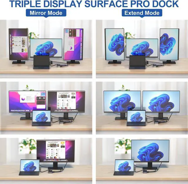 Surface Pro Dock Strong Compatibility: This Microsoft Surface Docking station with surface connection technology, is widely compatible with Microsoft Surface Pro 9/8/X/7/6/4/3/2017, Surface Laptop 4/3/2, Surface Laptop, Surface Laptop go, Surface Book3/2, Surface Book. Surface pro 9 docking station creating more value for work. (Please connect the magnetic surface connection in the right direction to your surface and connect the power supply port when using)