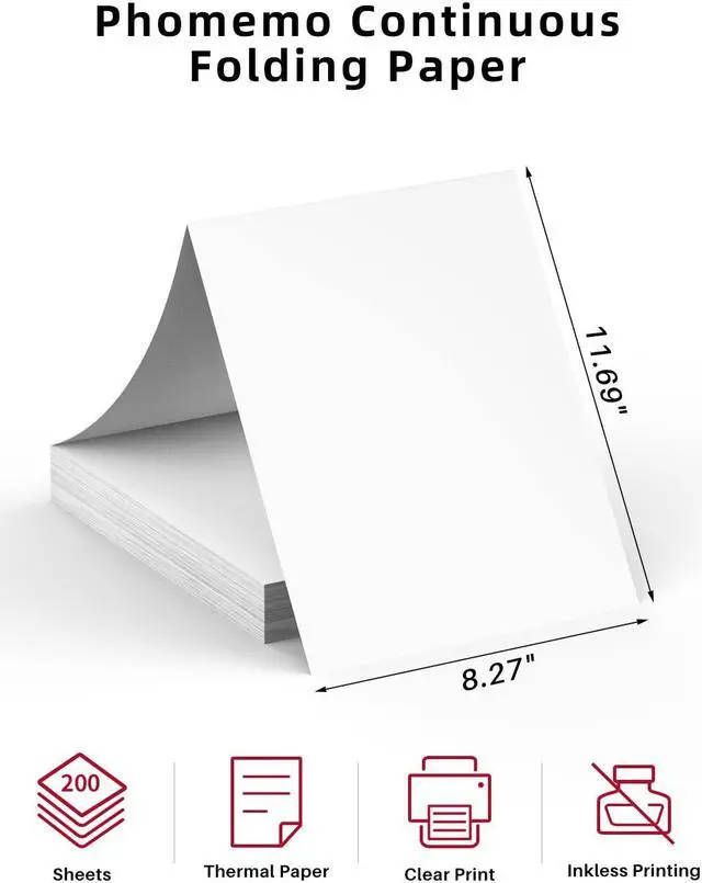 Versatile Compatibility: Phomemo Folding Thermal Printer Paper: US Letter Size, 200 Sheets/Pack