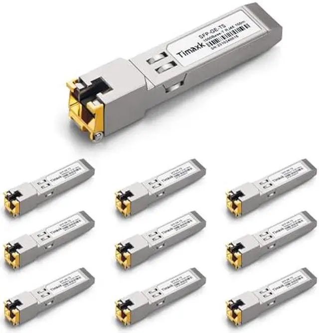 Timaxk 10Pack 1000BASE-T SFP to RJ45 Ethernet Module, Gigabit SFP-T Transceiver up to 100m Over Cat 5 Cable,Compatible with Cisco, Ubiquiti, Mikrotik, D-Link, Netgear, Qnap, Linksys and More